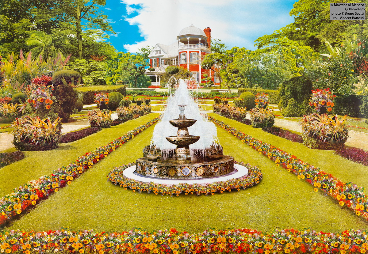 Il ne s’agit pas tout à fait de photographies, mais d’insolites et baroques copier/coller d’environnements écologiques et/ou d’architectures juxtaposés de façon improbable. Ces natures made in Egypt sont appelées en arabe mandhar ṭabīɛī, des « paysages naturels »
