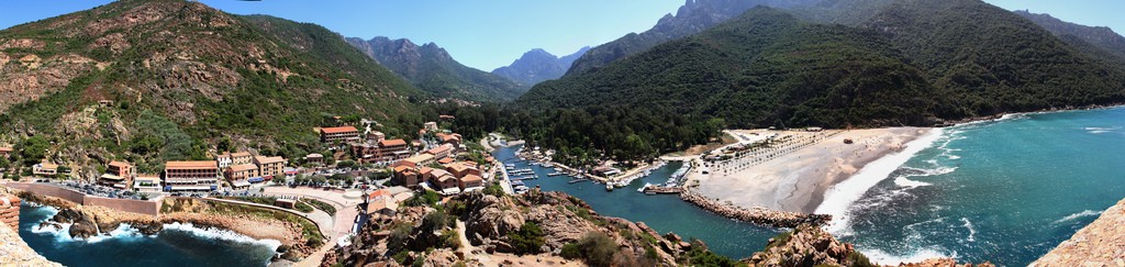 La Corse est située à 177 km au sud-est de la Côte d’ Azur et à l’ouest de la Toscane. A part les innombrables criques et promontoires de la côte ouest qui lui donnent un aspect de dentelle et les hautes falaises de la côte est, la Corse est une île plutôt boisée et montagneuse. En empruntant donc un réseau de petites routes serpentées, on peut visiter les jolis petits villages, aux maisons de pierre aux toits de tuiles, nichés sur le versant de montagnes où poussent des pins et des châtaigners ou de rochers dénudés, peu acceuillants aux pics qu’on peut distinguer depuis la mer.