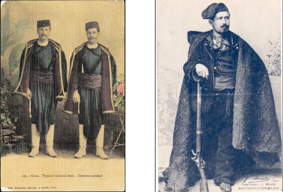 Malgré toutes ces différences, ils ont des points communs: l’amour de la Liberté et de l’Indépendance. En Corse, il y a un mouvement autonomiste depuis plusieurs années, en Crète, il y a des milieux qui désireraient une Crète jouissant d’une certaine autonomie. Ils se vantent d’être patriotes et prêts à donner leur vie pour défendre leur territoire et l’honneur de la famille. A propos de l’honneur, il faut dire qu’ils ont leur propre système de valeurs morales (surtout dans le passé) et un sens commun d’attribution de la justice: la vengeance par le sang, la vendetta, thème central d’un roman de Prosper Mérimée COLOMBA.