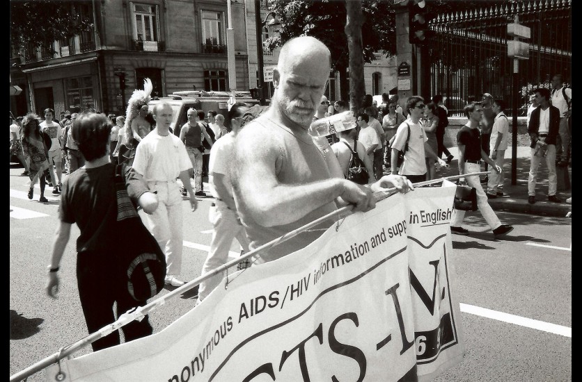 Manifestation contre le SIDA. Boulevard Saint -Michel, 1988 © Costa-Gavras