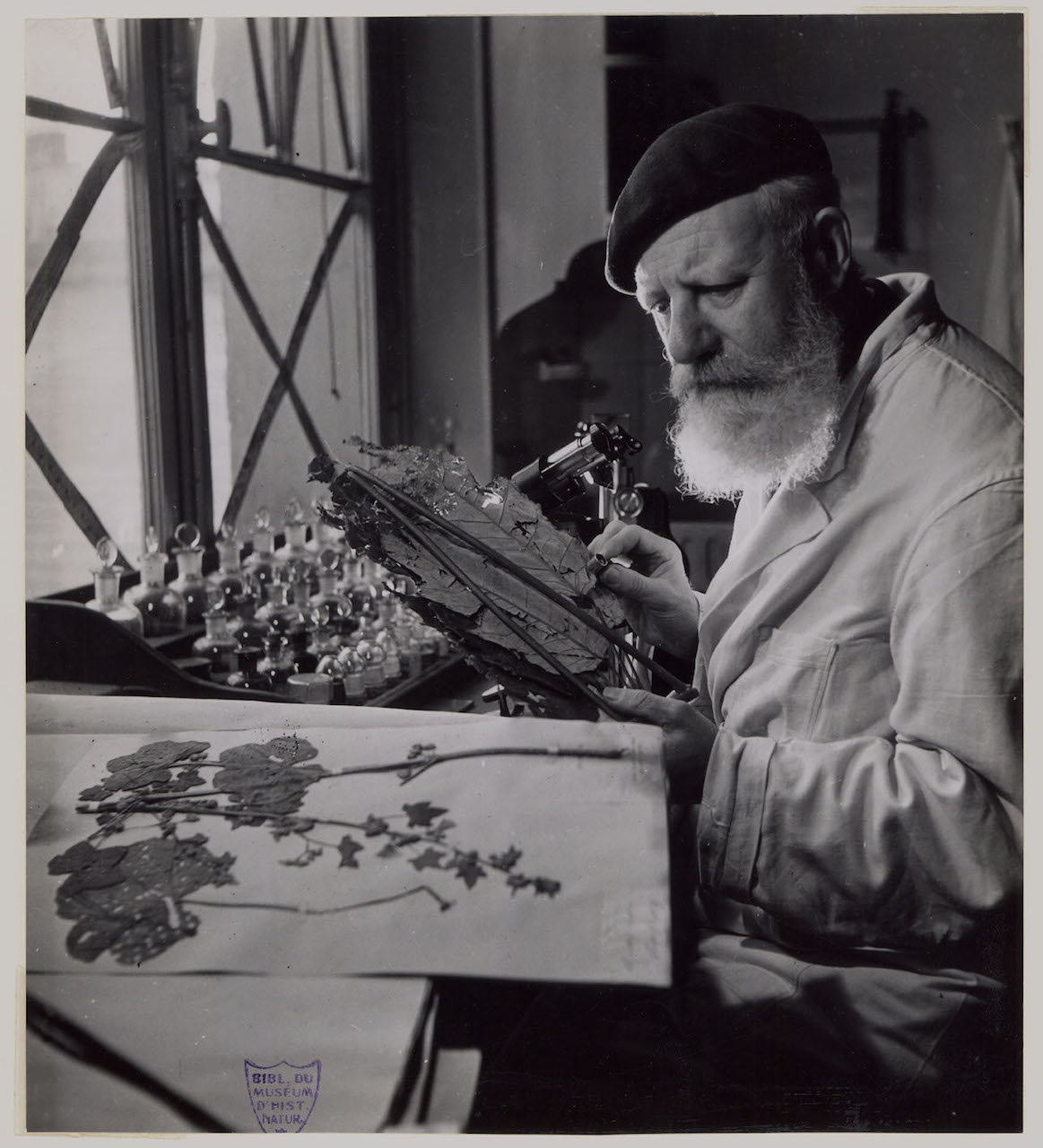 Robert Doisneau entre pour la première fois au sein du Muséum en 1942 dans le cadre d’une commande de l’éditeur et typographe Maximilien Vox (frère de Théodore Monod, explorateur et professeur au Muséum). En charge de la préparation de l’ouvrage «Nouveaux destins de l’intelligence française» consacré aux personnalités françaises influentes dans le monde de la science et de l’art, M. Vox a besoin d’illustrations fortes.