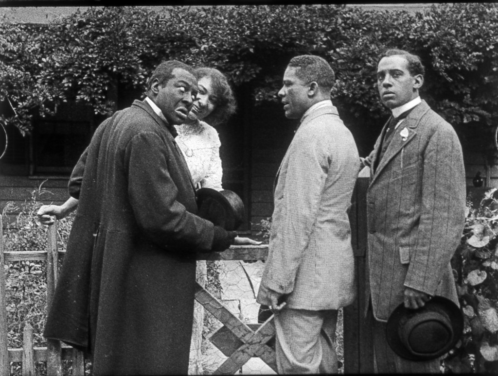 Previous ImageNext Image ss_r56_f07218_gate Scene still Bert Williams Lime Kiln Field Day Project. From left to right: Bert Williams, Odessa Warren Grey, unidentified, Walker Thompson